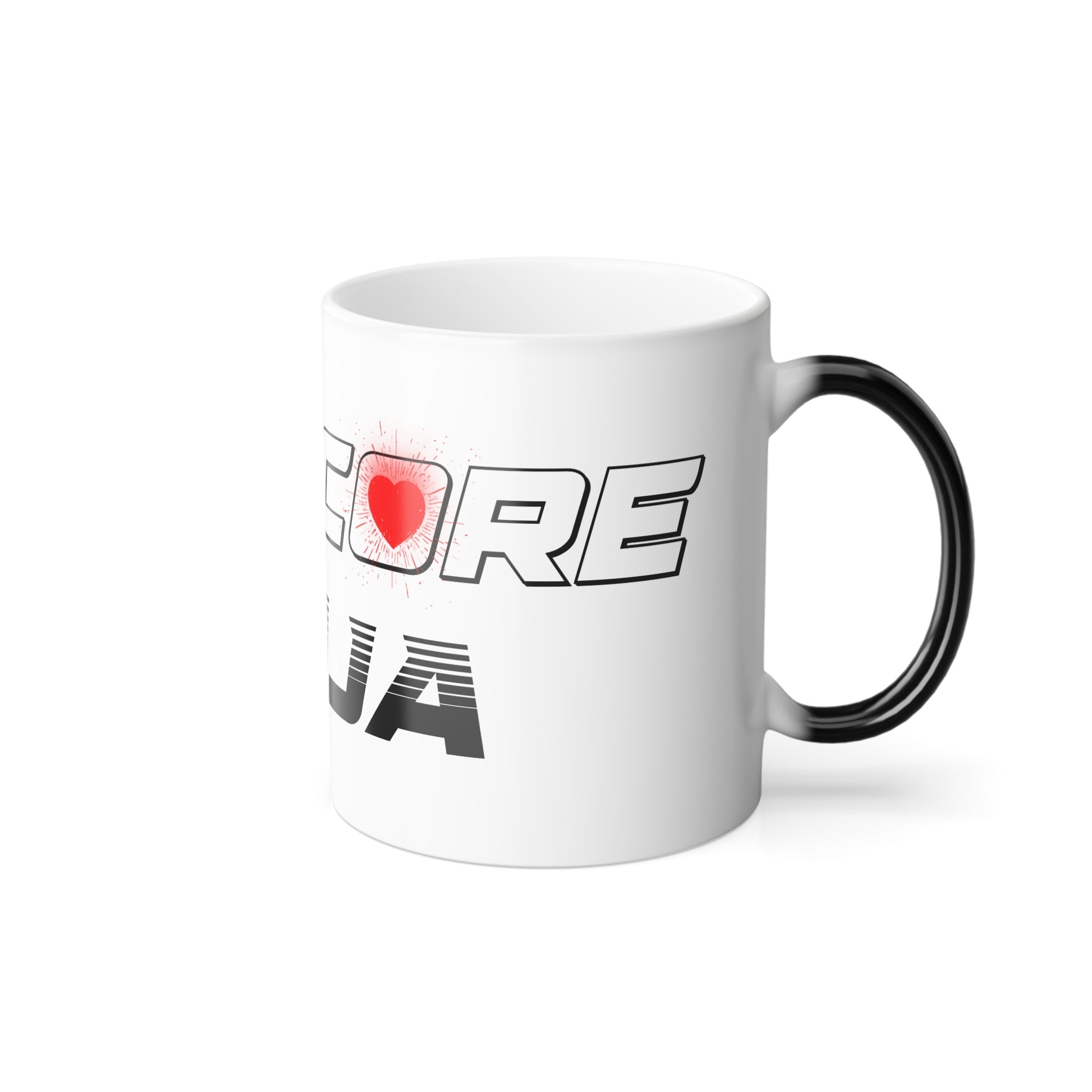 Personalized mugs are super popular gifts for friends and loved ones. This one changes color and will be the gift that keeps on giving. The heat-reactive surface reveals the HartCore Ninja design once the mug gets warm. The ceramic cup will go back to its original black outside and white inside when it cools down. The C-shaped handle helps keep a sturdy grip. It comes in one size – 11oz (0.33l) – plenty for that big morning cup of coffee.